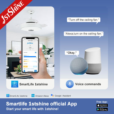 숨겨진 날이 있는 WiFi 제어 3단 속도 65W 접이식 팬 조명