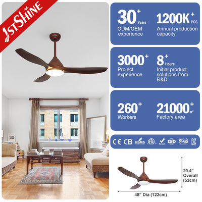 48 인치 플라스틱 LED 천장 팬 나무 곡물 컬러 블레이드 DC 모터
