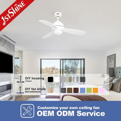 빛과 원격 제어 장치와 함께 흰색 현대 접합판 천장 팬