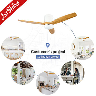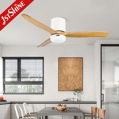 3개의 천연 나무 블레이드 플러시 마운트 스마트 앱 제어 LED 조명 천장 선풍기