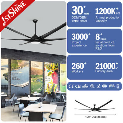 깔끔하고 검은색의 완성도와 100인치 천장 팬의 대담한 디자인은 현대 가정이나 상업용 공간에 완벽한 선택이 됩니다.이 팬은 전기 청구서에서 장기적인 절감을 보장하면서 강력한 공기 흐름을 제공합니다..